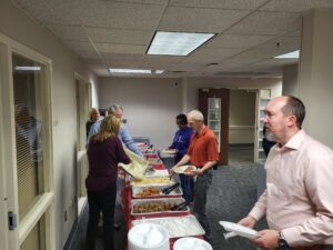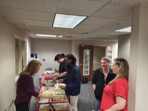 While the door decorating contest certainly made OIT feel like a winter wonderland, no holiday season is complete without good food shared among great colleagues. On Wednesday, December 14th OIT held its annual Holiday Luncheon. OIT’s Leadership team graciously treated staff to a delicious catered meal and several people brought homemade desserts for all to enjoy afterward. In addition to celebrating the holiday season together as an agency, the luncheon also provided a special opportunity for OIT Secretary Marty Redden and the entire Leadership team to express their gratitude for all OIT staff do throughout the year in support of the organization.